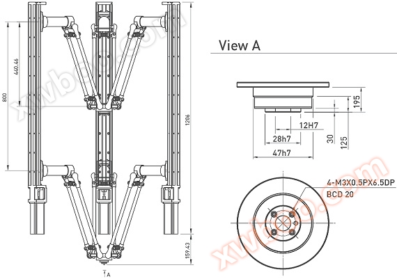 采用平行连杆机构,具有较大工作范围与高速能力。